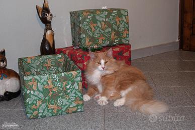 Fratellini Norvegesi delle Foreste, con pedigree, microchip, completamente vaccinate e sverminati, esenti Felv Fiv Fip Pkdef e Gsd4. Sono tre cuccioloni bellissimi, hanno 8 mesi e sono pronti a far par parte della tua famiglia. Nati e cresciuti in casa vivono con la loro allevatrice e la loro mamma a San Giorio di Susa(To). Per qualsiasi informazione chiamare o scrivere su whatsapp al numero 3389227125