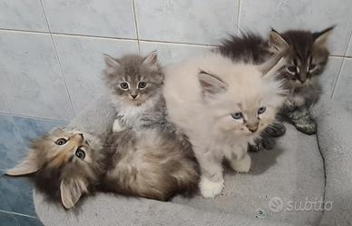Vendiamo gattini siberiani, 3 maschi e 1 femmina, disponibili da inizio Ottobre di PURA RAZZA con pedigree da compagnia, vaccinazione trivalente e sverminazione . Allevamento amatoriale in casa con entrambi i genitori . I gatti siberiani sono ipoallergenici quindi adatti alle persone che soffrono di questo disturbo. Siamo disponibili a fare prove di allergia a casa senza impegno. Telefonare ore serali , oppure per messaggio sms o whatsapp
