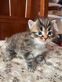 Disponibili cuccioli di siberiano presso il nostro allevamento Magic Siberian Starfall. Si tratta di due splendidi maschietti scuri black Tabby, nati il 3 marzo e adottabili a fine maggio. I gattini, figli di campioni che hanno avuto riconoscimenti presso Expo internazionali, verranno cresciuti con tutte le cure necessarie; saranno vaccinati e sverminati e inserito a loro il microchip. I genitori, entrambi di alta genealogia, sono tutti testati Fiv Felv e FCoV Ag con esito negativo. I cuccioli verranno ceduti dopo i tre mesi di svezzamento con regolare libretto sanitario e pedegree Anfi. Per informazioni e vedere tutte le loro foto potete contattarmi o cercare su google Siberian Starfall