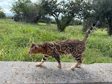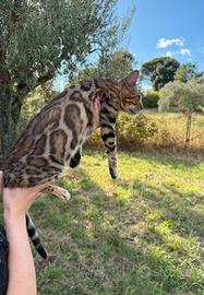 Stupenda gattina bengala Brown spotted tabby per rehoming , colore bello accesso rossissima , buona caratterialmente, adora le passeggiate, microchip. Libretto , passaporto internazionale. Solo persone serie , preferibilmente senza altri animali in casa