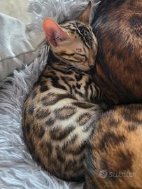 Vendesi gattina Bengala nata il 12 gennaio, disponibile da subito. La gattina è stata sverminata il 25 febbraio, viene ceduta senza vaccinazioni. I genitori sono entrambi con pedigree. Ha preso i bellissimi colori del padre, è vivace, giocherellona e abituata al contatto umano. Mangia sia crocchette che cibo umido ed è già abituata alla lettiera. Solo se realmente interessati scrivetemi, vi risponderò con ulteriori foto e video.