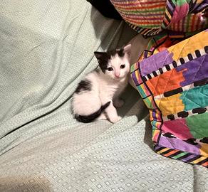 Roma, gattina femmina bianca e nera adorabile di 2 mesi cerca casa.