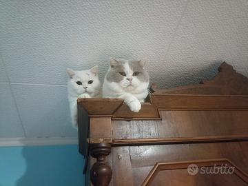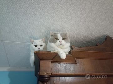 Cedo stupendo esemplare di British shorthair di 1 anno gia' sterilizzata munita di pedigree e libretto sanitario e contratto di cessione. qui in foto con il papa', la gattina adora la compagnia dei suoi simili, ha un carattere indipendente ed ha una bellezza rara...una pantera bianca con macchie e coda marrore. si cede ad amanti della razza , gentilmente chiedo presentazione al primo contatto . offro massima serieta' .