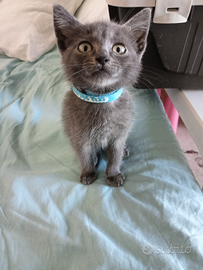 Gattina di 2 mesetti dolcissima e socievolissima, colori del gatto certosino, con splendide sfumature di grigio. Sanissima con tutti i controlli e trattamenti antiparassitari già fatti, adottasi ad amanti degli animali