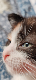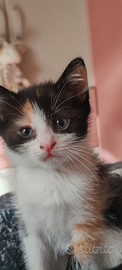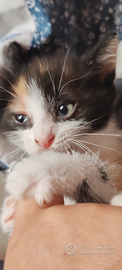 La mia siamese sta facendo da balia ad una stupenda gattina calico (a 3 colori) a pelo lungo, tenerissima e coccolona, piccolissima, uno scricciolo di gatto con degli splendidi occhietti a mandorla color grigio verde.