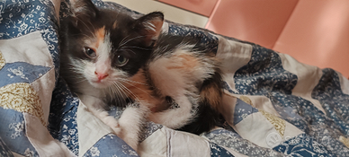 La mamma era una gatta di casa, forse troppo piccola per fare i cuccioli e purtroppo per una complicazione è morta dopo il parto. La piccola avrà 2 mesi la settimana prossima, mangia da sola sia umido che crocchette kitten e usa perfettamente la lettiera.
