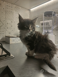 Cedo gattina, di una bellissima Cucciolata figlia di Hedgard ( Gatto delle foreste norvegesi ) con Pedigree arrivato secondo alla sua prima mostra , e di Minù ( Maine Coon) anche lei bellissima. La gattina è abituata alla lettiera , mangia di tutto , è attivissima , simpaticissima e Stupendamente bella. È già sverminata. Già disponibile
