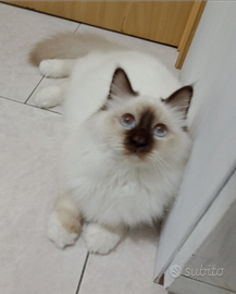 Splendida cucciola di razza Sacro dì Birmania di 6 mesi nata e cresciuta in famiglia con entrambi genitori in possesso del Pedigree Anfi,di carattere molto affettuosa e tranquilla,cedo con libretto sanitario,tutte le vaccinazioni sverminazioni e profilassi antiparassitaria esterna.per ulteriori informazioni chiamate su WhatsApp al 3889944741