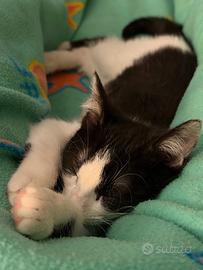Per motivi personali e di salute, cerco una famiglia amorevole per un dolcissimo gattino bianco e nero di 4 mesi.