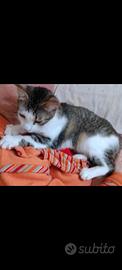 Gattina di 9 mesi, dolce, affettuosa e sempre alla ricerca di coccole. È vaccinata, sterilizzata ,microchip , libretto sanitario e certificato veterinario che attestano il suo stato di buona salute. È abituata alla vita in appartamento e si comporta bene in casa: usa regolarmente la lettiera ed è una micina educata e pulita. Socievole con altri mici e molto dolce con le persone, si fa prendere con facilità in braccio. Cerchiamo per lei una famiglia amorevole e responsabile, pronta ad accoglierla come un vero membro della casa e a donarle stabilità, attenzioni e tanto affetto per tutta la vita. Per informazioni 3761508422