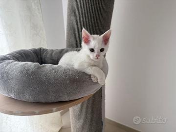 Disponibile femmina bianca di due mesi. La gattina è di carattere dolce e affettuosa già abituata a lettiera ,tiragraffi, pappe e crocchette. Verrà ceduta vaccinata e sverminata. Le ultime due foto sono i genitori di nostra proprietà (nero il papà e bianca la mamma).