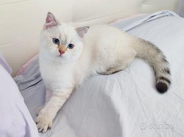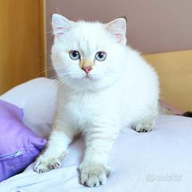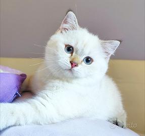 Ha compiuto 3 mesi ed è disponibile questa meravigliosa gattina di razza Scottish Straight dalla rara colorazione golden point con occhi azzurri