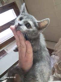 Dal nostro allevamento Dolci Zampette cediamo gattina a zampe corte con pelo corto di colore blue tortie, coccolona e giocherellona. Vaccinata, sverminata, con pedigree. Siamo in Piemonte, provincia di Biella. 1 ora 15 minuti da Milano.