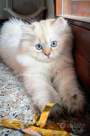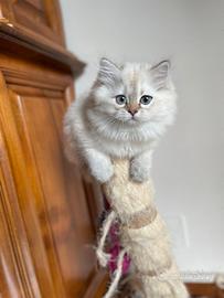 A fine luglio è disponibile questa meravigliosa gattina di razza Scottish Straight dalla rara colorazione golden point con occhi azzurri
