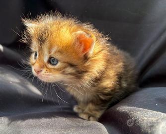 L'allevamento Degli Zar (Abruzzo) dispone per la prenotazione di una bellissima cucciola di gatto siberiano nella ricercatissima colorazione black gold. La cucciola ha un ottima struttura e una colorazione particolare . Ottima per carriere espositive. La cucciola lascerà l'allevamento a tre mesi di età con le prassi sanitarie concluse, libretto sanitario, microchip e pedigree ministeriale.