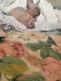 Dolcissima femmina di Sphynx pronta due mesi e mezzo (ha una piccola ernietta ombelicale che non le da nessun problema, per quello il problema più basso)...libretto sverminata primo vaccino microchip passaggio di proprietà, no pedigree...per info solo se realmente interessati lasciate il contatto whatsapp, non perditempo!!
