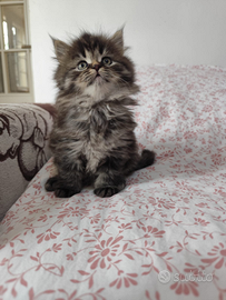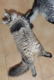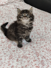 Vendo 2 gattine assolutamente uniche, combinazione di 2 razze completamente diverse. La madre è Scottish Straight (nelle ultime foto) il padre invece è un Maine Coon silver tabby. Gattine nate il 1 ottobre, quindi hanno compiuto i tre mesi. Sono molto dolci e giocherelloni, con occhi grandi e pelo lungo e folto. Sono inoltre completamente autonomi, usano la lattiera, il tiragraffi e mangiano da soli. I vaccini non sono stati fatti, così come è assente il pedigree. Per maggiori informazioni e qualora vorreste vedere le foto dei gatti della cucciolata precendente di questa coppia e il padre dei gattini, non esitate a scrivermi.