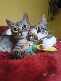 Fermati a leggere,questo non è il solito annuncio ed io non sono la solita volontaria.Sono una persona che non si tira mai indietro quando si tratta di aiutare creature indifese,lo faccio con estremo amore e sacrificio ma anche con serietà e correttezza nei confronti dei futuri adottanti.Ti racconto di Hana e Yuki,due piccole gattine di tre mesi e mezzo.Sono nate esattamente il tre agosto e a 15 giorni dal parto la loro mammina è morta.Era una randagia con metastasi ai polmoni che con enorme sacrificio ha messo al mondo le sue piccole e le ha allattata per 15 giorni ma poi un tumore l'ha portata via.Hana e Yuki sono state allattate da una balia,oggi vivono a casa mia ma chiuse in una stanza perché io ho scelto di adottare gatti con varie patologie che non possono convivere con altri gatti.Hana e Yuki se non trovano una famiglia sono costrette a vivere in una stanza e questo non è giusto,sono troppo socievoli,dolci,affettuose e hanno il diritto di avere una vita come ogni altro gatto,amate e coccolate.Adorano le carezze e soprattutto addormentarsi sulla mia pancia,sono socievoli con tutti,sono sane.Sono una persona corretta e scrupolosa,Hana e Yuki sono seguite in una clinica,sono stata Sverminate,vaccinate e spulciate.Sono sane,piccole in confronto ad altri gatti ma la loro mamma lo era e questo dipende dal fatto che sono state allattate.Avrete praticamente delle mini gatte.Hanno il libretto sanitario in regola,manca solo qualcuno che le scelga per la loro storia,per la loro dolcezza,per non condannarla ad una vita in una stanza.Non sono di razza,ma sono della specie più bella,l'amore e la forza di essere creature sopravvissute all'essere rimaste orfane e queste le rende speciali, dolci, Hana fortemente legata agli umani,sale sulle spalle come una scimmietta e impasta così come Yuki che ama addormentarsi in braccio.Non lasciate che questo annuncio non abbia risposte,siamo a Caserta ma possono essere adotta anche al nord