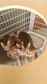 Bellissimi cuccioli di Bengala, un mese e mezzo, con altissima genealogia. Molto affettuosi, giocherelloni, coccoloni, già abituati alla lettiera. Verranno consegnati ai 3 mesi di vita con vaccinazione e sverminati. È possibile avere il pedigree. Il padre è nipote di un campione mondiale. Contatti con WhatsApp, anche per telefono ore serali, tramite Subito