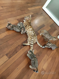 Bellissimi gattini bengala colore Brown spotted e snow lynx,genitori pedegree anfi, testati fiv-felv.Si cedono con libretto sanitario, vaccinazione trivalente, trattamento antiparassitario.Sono educati all'uso della lettiera e del tiragraffi