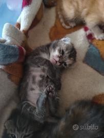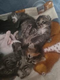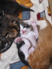 Gattini nati il primo di Aprile, disponibili al raggiungimento dei 2 mesi,svezzati. Non cedo prima del completo svezzamento Un maschio bianco e tigrato e 4 femmine. Nati in casa e sempre tenuti in casa a contatto con persone e bambini.