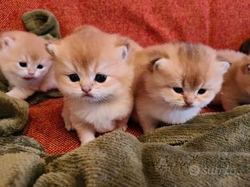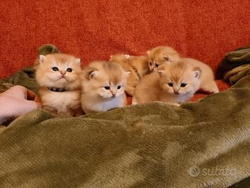 Gattini British scorthair Golden, saranno cedute a due e mezzo mesi di età con libretto sanitario personale ,con tt trattamenti e visite registrate , visita di buona salute con relativo certificato ,i vaccini complete x età, microchip , svezzati con cibo secco e umido di alta qualità,abituate alla lettiera e tiragrafio .I genitori sono testati FELV FIV PKD eco cardio negative
