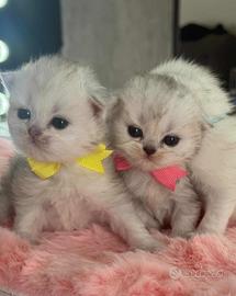 Nel nostro allevamento amatoriale sono disponibili splendidi cuccioli di British Long Hair, nati il 13 Marzo, cresciuti in ambiente familiare con cura e attenzione. Mamma: Silver Shaded (occhi verdi) Papà: Highland Fold Color Point (occhi azzurri) Genitori visibili Disponibili: -Maschio Silver Shaded (occhi verdi) -Maschio Silver Tabby (occhi verdi) -Femmina Silver/Black Tabby (occhi verdi) Prenotabili da subito! (Disponibili da inizio Maggio) I cuccioli verranno ceduti con: -Libretto sanitario, -Sverminazione completa, -Prima vaccinazione, -Completamente svezzati, -Abituati alla lettiera e al tiragraffi, -Controllo buona salute. Entrambi i genitori testati negativi FIV e FELV. Cresciuti con amore, dal carattere dolce e affettuoso, ideali per la famiglia! Prezzo: 830 € (No Pedigree) Per info, foto o video contattare in privato. Solo persone seriamente interessate.