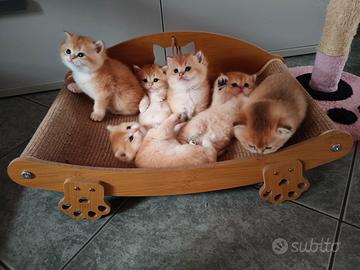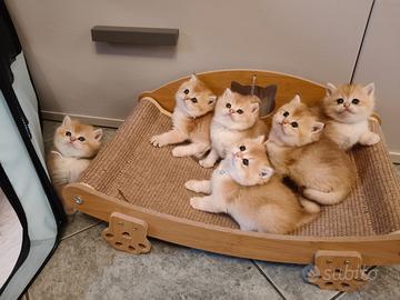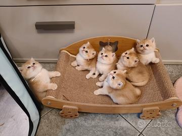 Gattini British scorthair Golden,sono nati 1/03/, saranno cedute a due e mezzo mesi di età con libretto sanitario personale con tutti trattamenti e visite registrate , visita di buona salute con relativo certificato ,i vaccini complete x l' età , microchip, svezzati con cibo secco e umido di alta qualità, abituate alla lettiera e tiragrafio .I genitori sono testati FELV,FIV,PKD negative