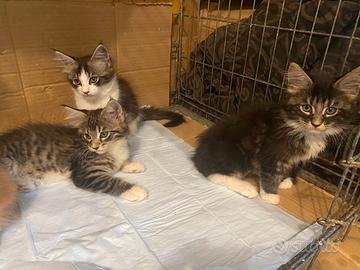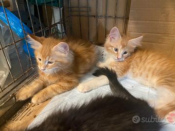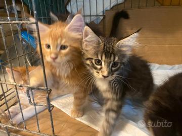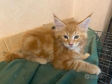 Gattini Main coon senza pedigree di colore rosso cream ,.e blue tabby originale sono nati il 10 aprire . I cuccioli stanno già iniziando a mangiare kitten da soli E stato cresciuto in ambiente domestico, abituato alla lettiera ed autonomo nell'alimentazione.