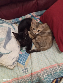 Due bellissimi gattini fratellini nero maschio e tigrotta femmina tre mesi chi li volesse adottare mi contatti