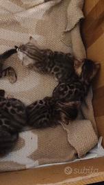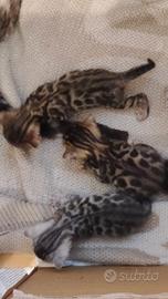 Disponibili a completo svezzamento ( metà maggio ) cuccioli di bengala nati in ambiente familiare ed abituati alla presenza di persone e animali. I cuccioli verranno ceduti con vaccino, sverminati e con libretto veterinario. Colori disponibili: Brown spotted, Snow lynx e melaniatico . Possibilità di visionare entrambi i genitori prezzo 500 per informazioni, foto e prenotazioni contattatemi in privato. Solo per amanti della razza e famiglie serie.