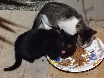 Regalo gattino di 8 mesi, un maschio (foto 1 ) e due gattini di 4 mesi (foto 2 e 3). Sono i gattini di una gatta randagia che gira nel quartiere. Sono sani, sono stati visitati dal veterinario. Sono abituati alla lettiera e mangiano sia secco che umido. Attualmente sono in stallo ma fino a metà marzo dopoché, se nessuno li adottera', purtroppo ritorneranno in strada. Sono molto diffidenti all'inizio ma dopo un po' si strusciano sulle gambe e fanno le fusa. Quello nella terza foto si fa prendere in braccio mentre gli altri due non si fanno prendere in braccio per ora, ma non mordano e non graffiano, sono curiosi, si avvicinano e ti annusano. Soltanto che non conoscono ancora le carezze e le coccole.