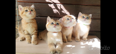 L'allevamento titan_cats vende queste splendide 4 gattinie di razza Scottish shorthair, fold o straight colore black golden shaded nate il 23 aprile 2025. Sono gatte di alta genealogia, con pedigree. Dolcissime e molto coccolone, vengono cedute dopo il compimento del terzo mese, con vaccini, antiparassitario, sverminazione, pedigree ENFI. I nostri cuccioli sono selezionati, hanno dei musini splendidi e un carattere meraviglioso. Potete seguirci su instagram per vedere altre foto o video, incluse quelle dei genitori che sono esemplari di alta genealogia, testati e esenti da Fiv Felv e Pkd. Per prenotazioni contattateci solo se veramente interessati via telefono, meglio primo contatto su Wathsapp al 3357102288. L'annuncio viene pubblicato su diverse città d'Italia, l'allevamento è vicino a Rimini, siamo disponibili per visite e per portare i cuccioli nelle nuove case (previo accordo) in tutto il centro Italia. Non cediamo da riproduzione