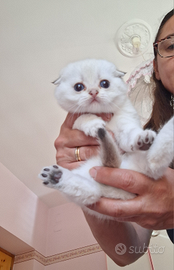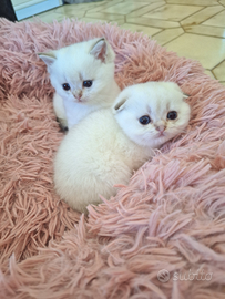 2 splendidi gattini nati il 25 aprile, saranno ceduti a 3 mesi di eta' con piano vaccinale completo, sverminazione, microchip, contratto di cessione, pedegree ministeriale.Sono due maschietti bianchi con sfumature golden, un fold e uno straight. I genitori sono esenti fiv, felv e pdk.