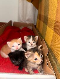 4 gattini cercano casetta con tanto amore si trattano di tre maschietti ( bianco e arancione , nero, e bianco e grigio) è una femminuccia a pezzata