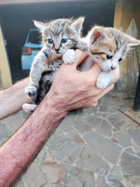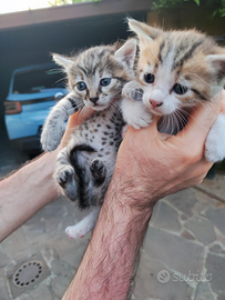 Regaliamo questi fantastici gattini, dolci e affettuosi, già spulciati, sverminati e abituati all'uomo, a persone amorevoli e dolci. Sono nati in casa, sono un maschio e una femmina, hanno 40 giorni, sono in svezzamento. Contattatemi o su WhatsApp o chiamate. Teresa.3492554979