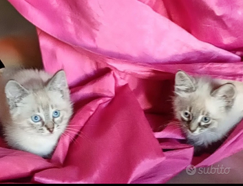 Disponibili gattini simil siamese. Manto tabby point. Sono maschietto e femminuccia. Hanno appena compiuto 2 mesi e sono abituati all'uso della lettiera. È possibile la consegna a Brindisi e Bari. La richiesta è di euro 150 per singolo gattino. Si cedono preferibilmente in coppia perché sono legatissimi.Per chi desiderasse adottarli insieme sarà ridotta la somma richiesta.