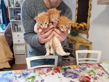 Tre fratellini maschi rossi Maine coon nati 11 marzo saranno pronti per 20 maggio sverminati e vacinati