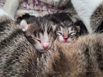 Regaliamo i 3 gattini in foto, nati il 17 marzo. Sono molto piccoli, per cui non è ancora possibile capire se siano maschi o femmine e si trovano a casa nostra, ad Albignasego (PD). Se volete venire a vederli, ricevere maggiori informazioni su di loro oppure prenotarne uno, contattatemi via Whatsapp al 320 3123062. I gattini verranno ceduti dopo che avranno compiuto 3 mesi, a persone amanti degli animali.