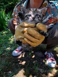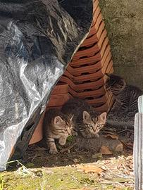 Bellissimi micini cercano casa. Si trovano a Pesaro. Sono 4 tigrati e 2 bianchi con striature tigrate. Sono nati circa un mese e mezzo fa. La mamma ancora li sta allattando.