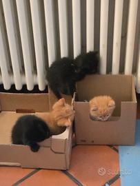 Regalo gattini nati il 22 febbraio: tutti maschi, 2 neri e 2 rosso tigrati. Sono giocherelloni, coccoloni e già abituati alla lettiera. Chi volesse adottarne uno può venire a prenderlo dopo il 22 aprile.