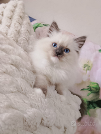Cedo come da titolo micini Ragdoll, i piccoli sono nati il 9 settembre e sono già disponibili per entrare in una nuova famiglia, vengono ceduti con pedigree da compagnia vaccino libretto sanitario microchip, sverminazione e primo trattamento anti parassitario, saranno abituati all'utilizzo del tiragraffi e della lettiera.
