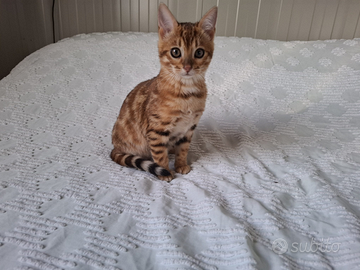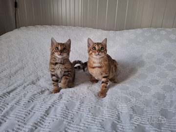 Gattini cuccioli di Bengala di tre mesi, da subito disponibili. Si cedono vaccinati, sverminati, con microchip, pedigree ANFI da compagnia. Possibilità di consegna in diverse regioni d'Italia. Genitori visibili entrambi, testati per le malattie genetiche pra-b e pk-def. E controllati a livello di cuore tramite ecocardio.