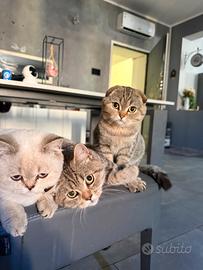 Ultimi 3 cuccioli 2 femmine fold un maschio straight nati in casa genitori visibili con pedigree e certificato di assenza malattie genetiche si cedono con sverminazione completa ,i gattini hanno 4 mesi quindi già pronti per la nuova casa