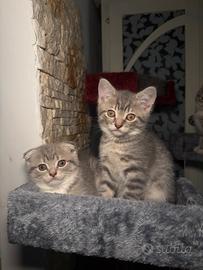 Vendo 2 adorabili gattini di razza Scottish Fold e Scottish Straight, nati il 3 gennaio 2026 Il maschietto è straight mentre la femminuccia è fold. Sono già molto giocherelloni, curiosi e abituati alla vita in casa. Lo svezzamento è iniziato con mousse per gattini Royal Canin Babycat e mangiano già i croccantini. Sverminazione completa , con visite dal veterinario regolari e in costante contatto con la veterinaria. Sono cresciuti con mamma e papà tranquilli, abituati ad altri animali e persone. Genitori vaccinati, esenti da malattie e tenuti sempre in casa al sicuro. Disponibili dal 3 aprile in poi. Potete venire a vederli quando volete, noi siamo di Roma zona Ostia. Non facciamo consegne fuori Roma. Non scrivetemi a meno che non siete veramente interessati, non voglio perdite di tempo. Il prezzo non è trattabile, l'ho abbassato già abbastanza