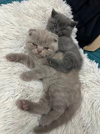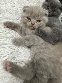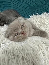 Gattini Scottish fold lilac maschietto e Scottish straight blu femminuccia,svezzati, abituati all' uso della lettiera e del tiragraffi, disponibili per la metà di aprile, genitori visibili esenti da fiv e felv.