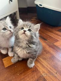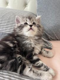 Il 25 agosto sono nati questi splendidi gattini con bellissime colorazioni che vanno dal silver al Bleck includendo quindi anche il blu. Entrambi i genitori sono super titolati con una bellissima struttura oltre ad una magnifica testa. I gattini stanno crescendo in un ambiente familiare quindi abituati alla vita in famiglia tira graffi e lettiera . verranno ceduti col primo vaccino e sterminati. Entrambi i genitori sono negativi a filv / felv / pkdef .