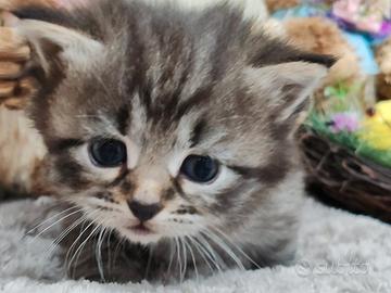 Disponibili cuccioli di gatto siberiano ipoallergenico i cuccioli sono 3 maschietti 2 silver tabby e 1 golden tabby e una femminuccia tigrata( ultime due foto). i gattini vengono ceduti dal 10 maggio con libretto sanitario, sverminazione e primo vaccino no pedigree. Mamma e papà di pura razza con pedigree esenti fiv e felv