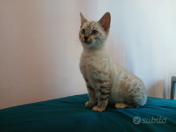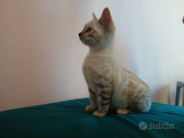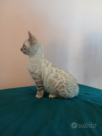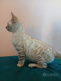 Bellissimo gattino maschio bengala,colore snow lynx, genitori pedegree anfi, testati fiv-felv.sSi cede con libretto sanitario vaccinazione trivalente trattamento antiparassitario.È educato all' uso della lettiera e del tiragraffi