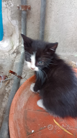 Piccolo gattino bianco e nero di un mese ,razza a pelo medio-lungo,dolce e docile ,molto giocherellone